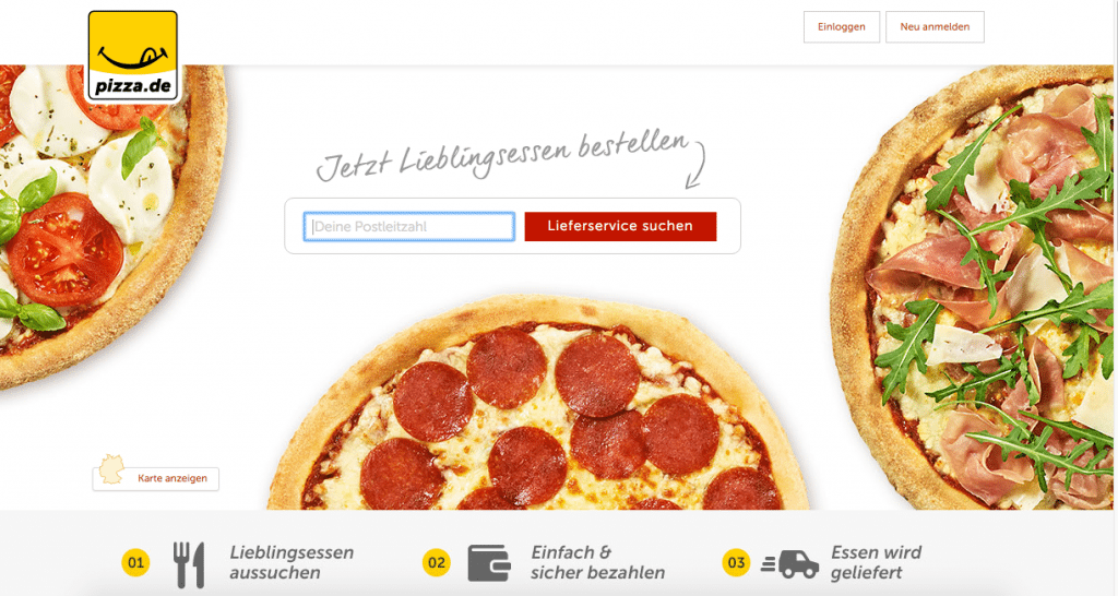 Pizza.de – Das Original. So bezeichnet sich Pizza.de, denn die Seite war die erste, über die man online Essen bestellen konnte. Mittlerweile gibt es einige Mitbewerber, die Website wirkt auch nicht mehr ganz sooo aktuell, aber natürlich kann man immer noch bei zahlreichen Restaurants über diese Seite Essen nach Hause bestellen. Nach dem üblichen Postleitzahl-Filter …